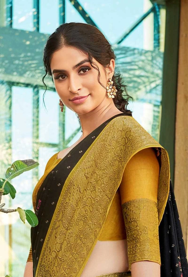 Beautiful Linen Cotton Jacquard Weaving Border Saree W/Blouse